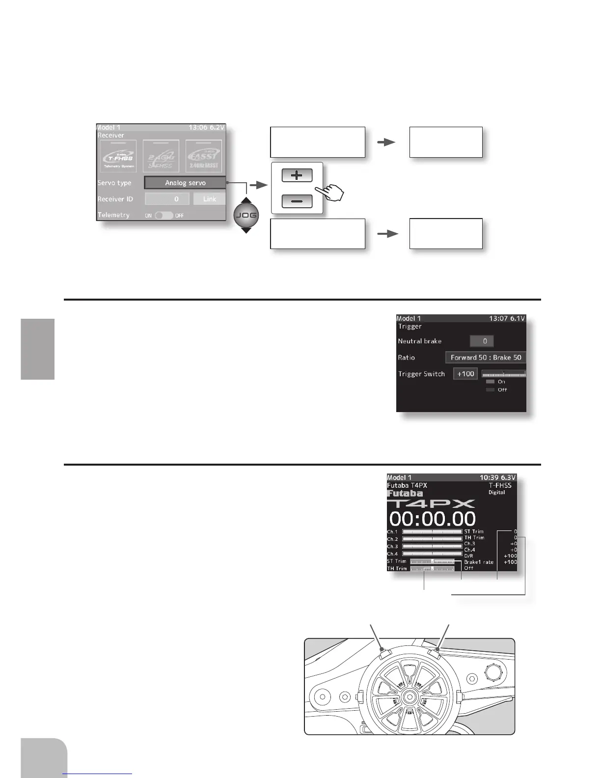 Refer to page 36 and display the "Receiver setup" screen. Move the cursor to the servo type