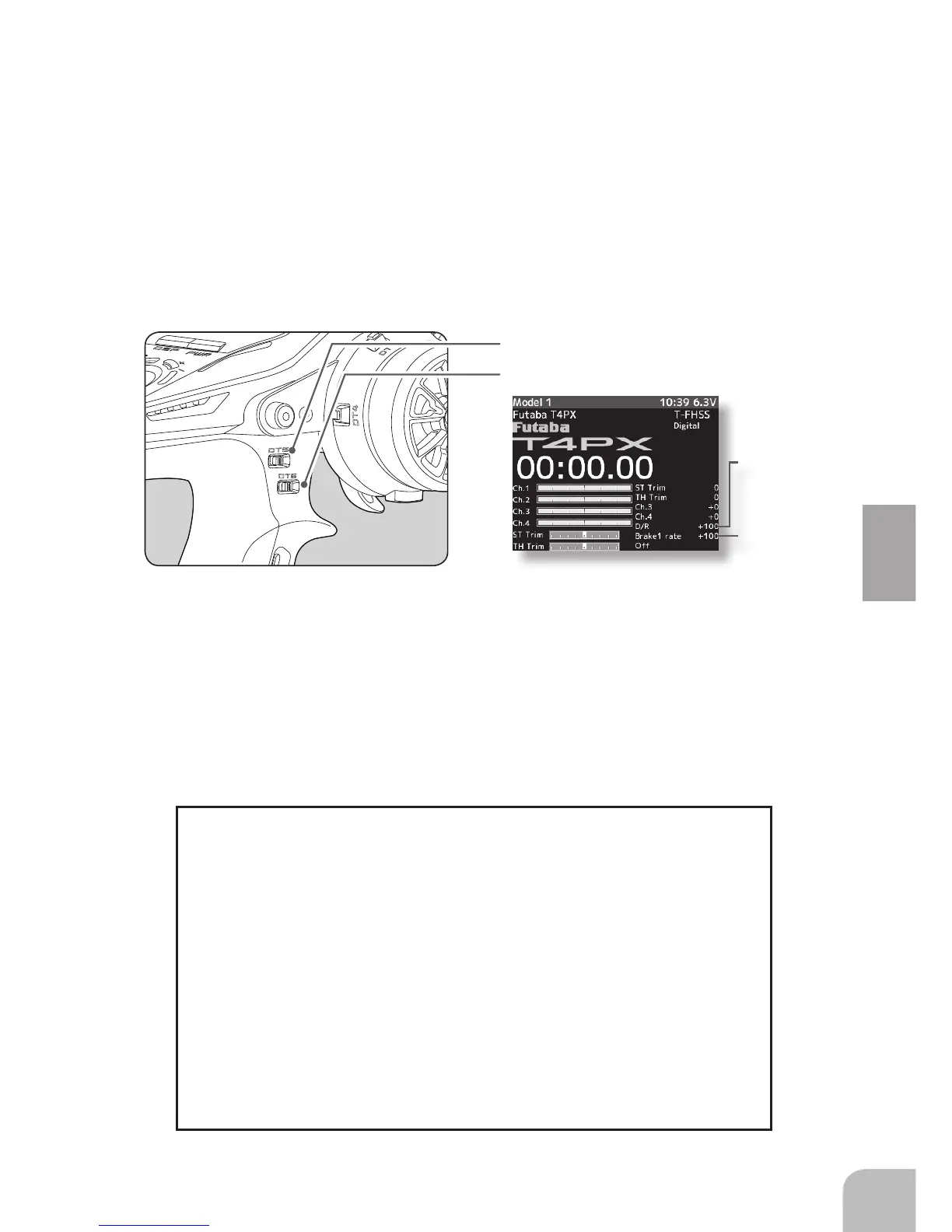 transmitter. Operate the DT5 and check if the D/R value displayed on the screen changes.