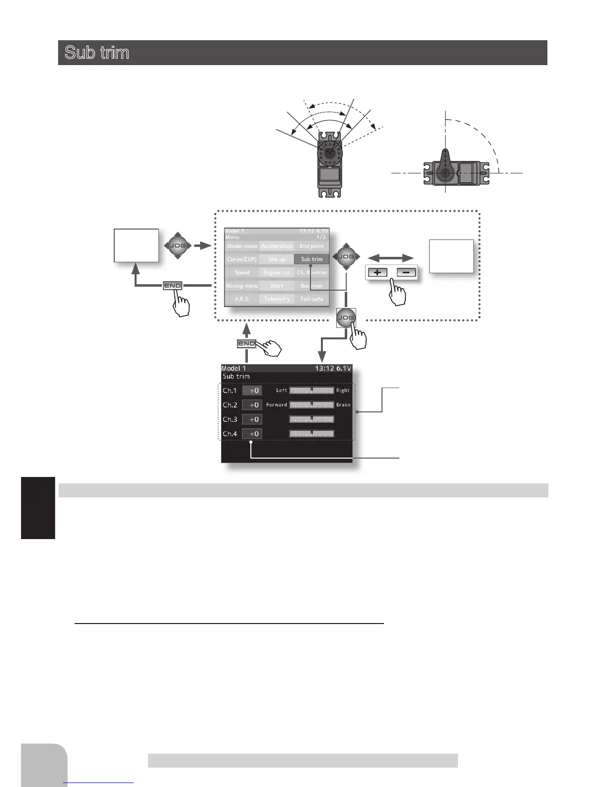 Use this function to adjust the neutral position of the steering, throttle, channel 3 and