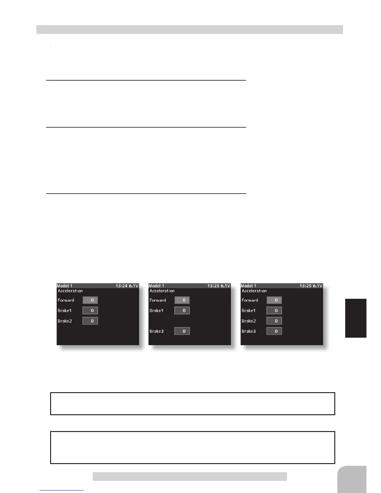 The throttle acceleration adjustment amount (Forward), (Brake1), 3rd channel and 4th