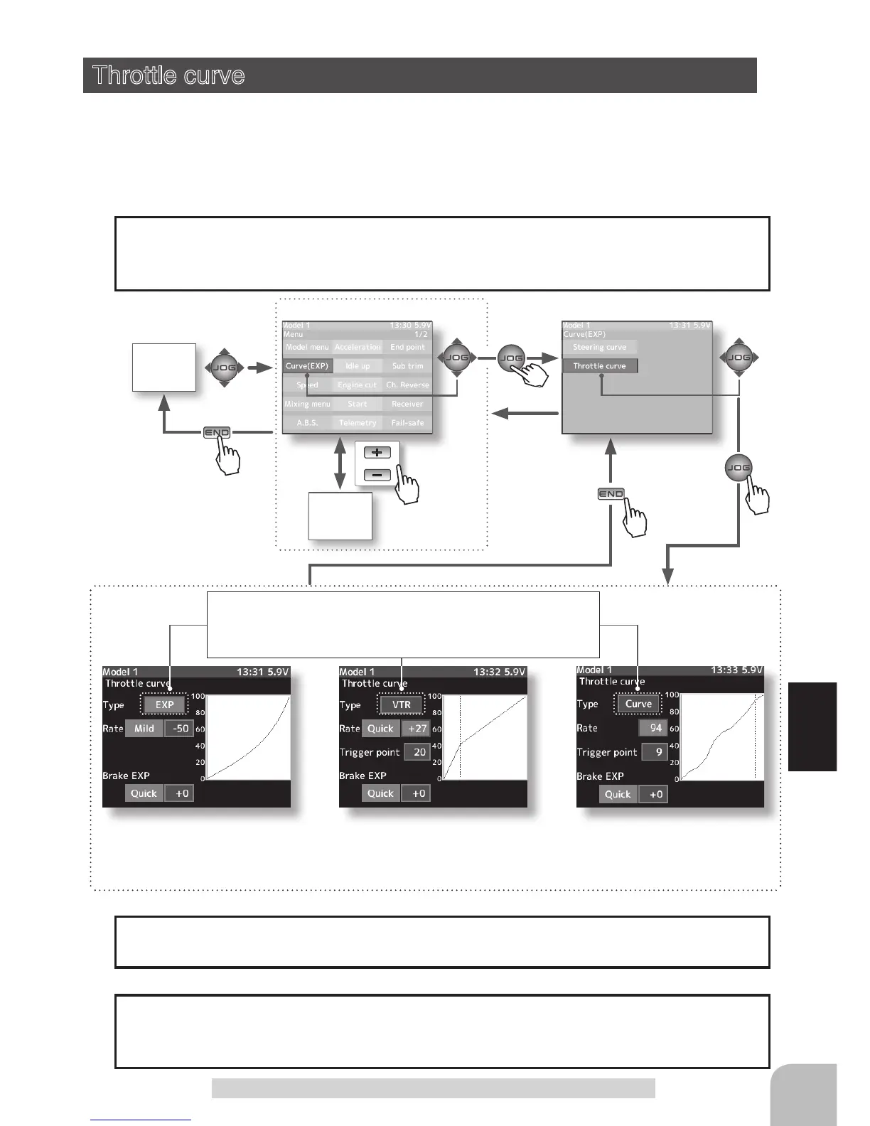 The throttle EXP curve and VTR curve adjustment (Foward side RATE) and(Brake side