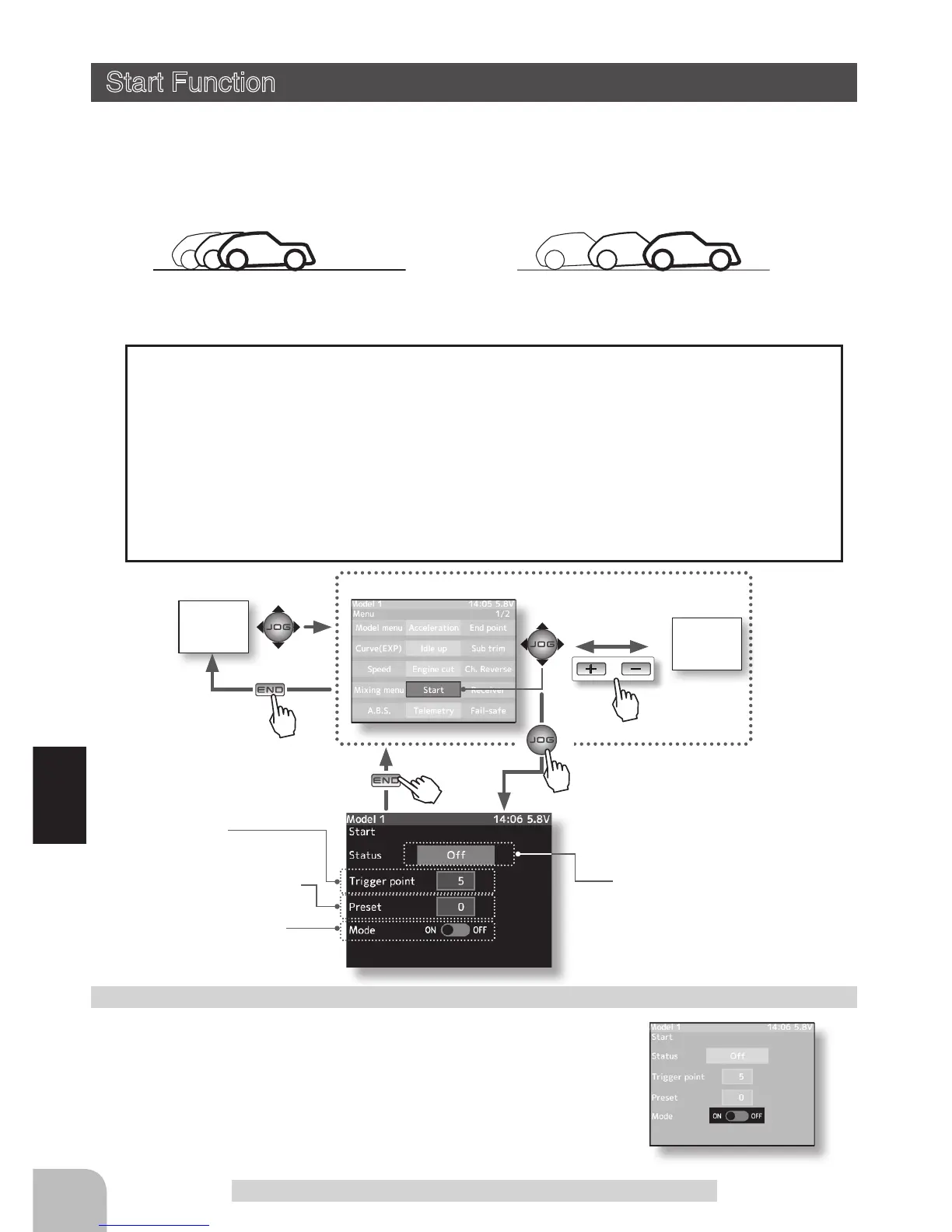 the car wheels will spin and the car will not accelerate smoothly. When the Start function is