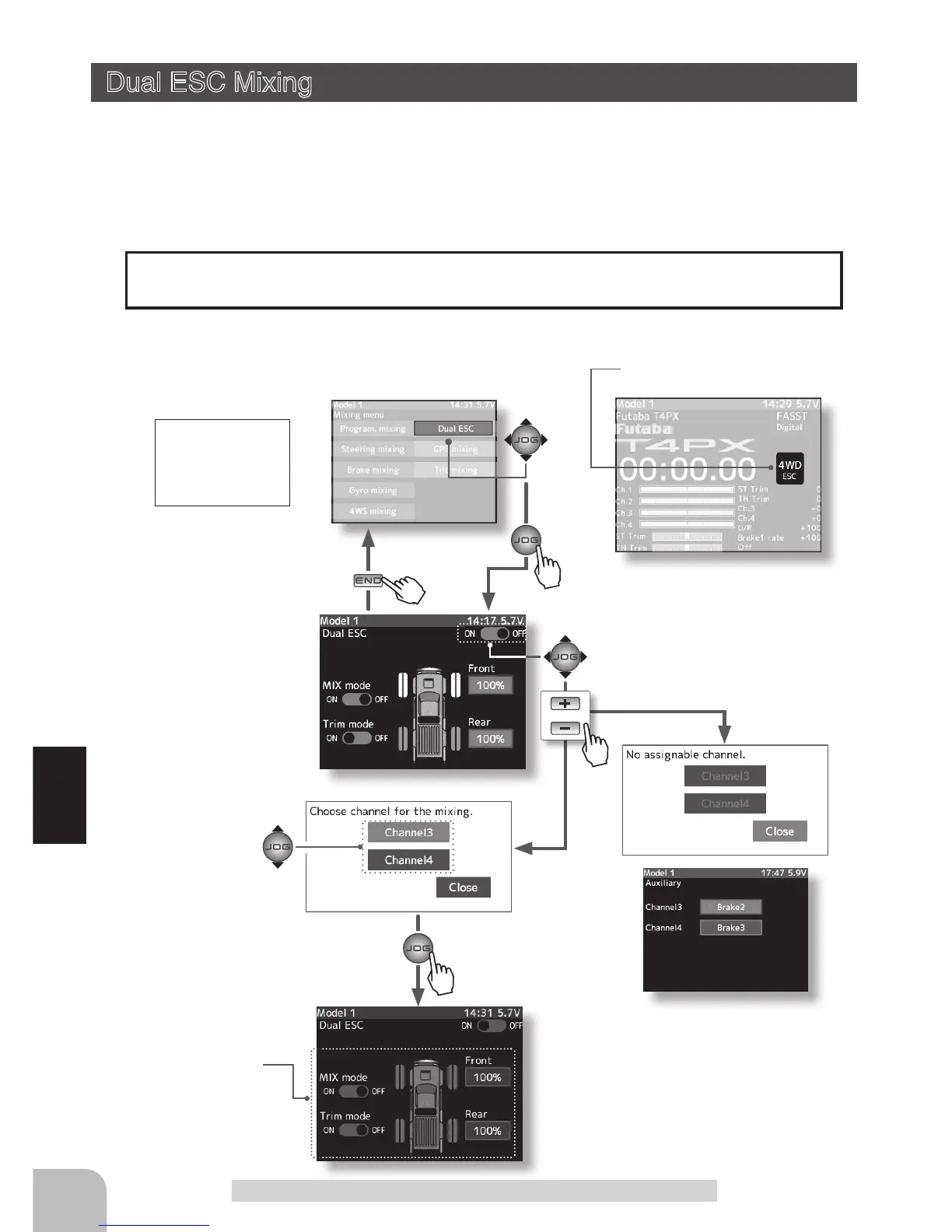 Dual ESC mixing screen from mixing menu screen (p.79)