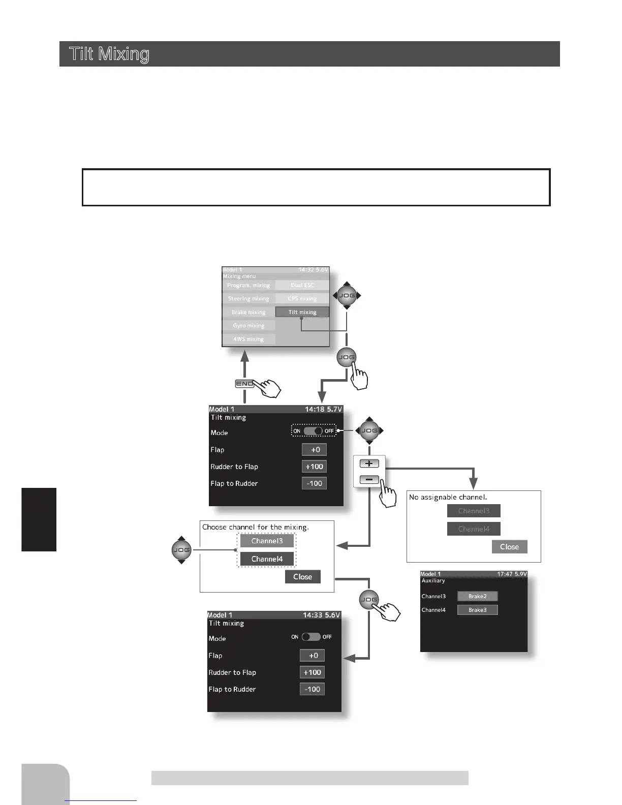 Tilt mixing can be performed by rudder operation, by steering wheel and ap channel.
