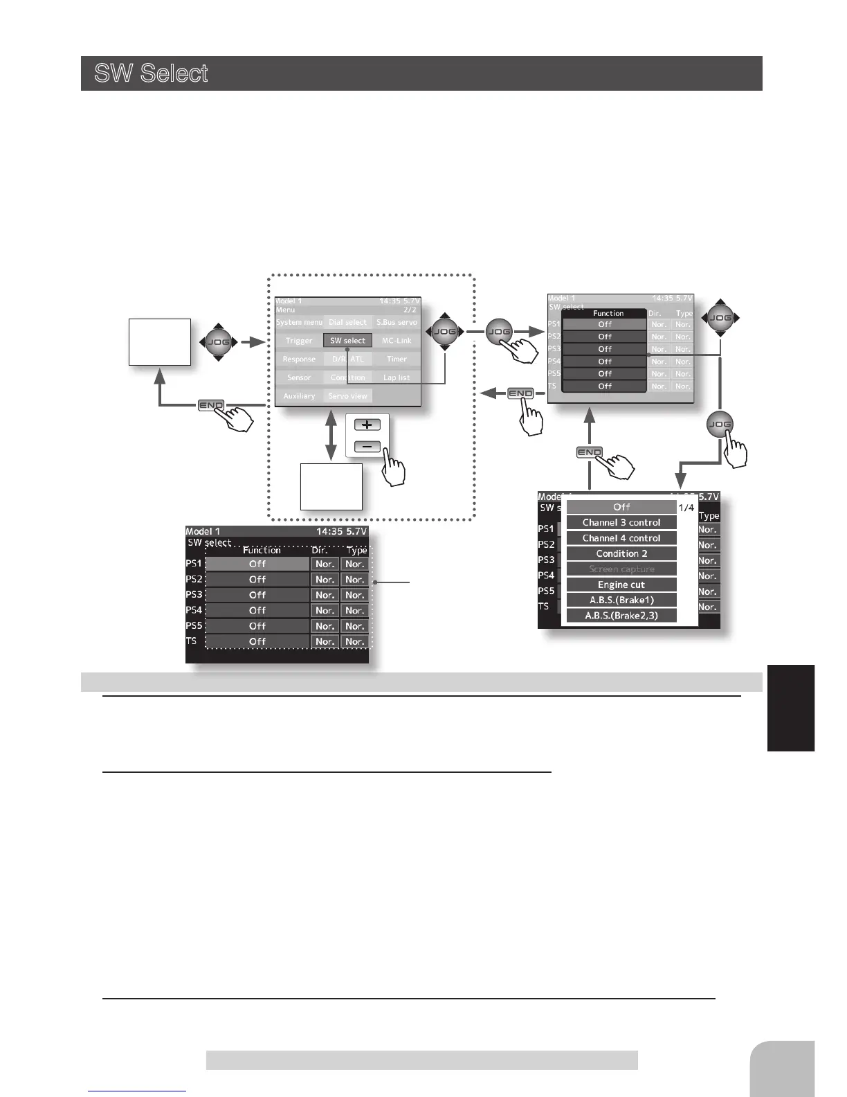 (PS1, PS2, PS3, PS4, PS5, throttle trigger) and setting of the direction, etc. of operation.