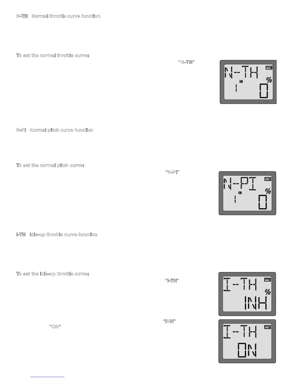 “ON” display. Now the I-TH function is on. Push the SELECT key, throttle stick