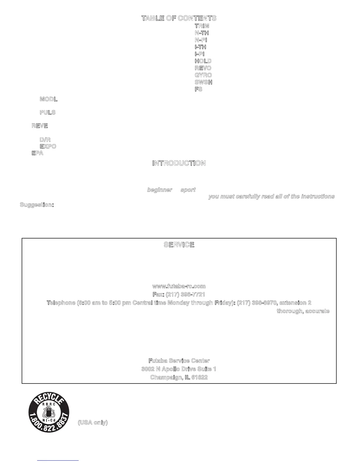 For further assistance you may also refer to your hobby dealer, or contact the Futaba Service Center at the web site, fax