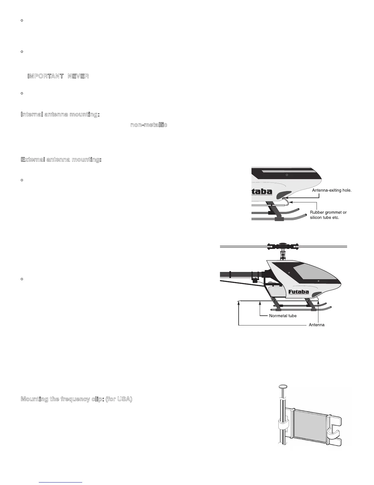 • The receiver antenna may be mounted inside or outside the model: