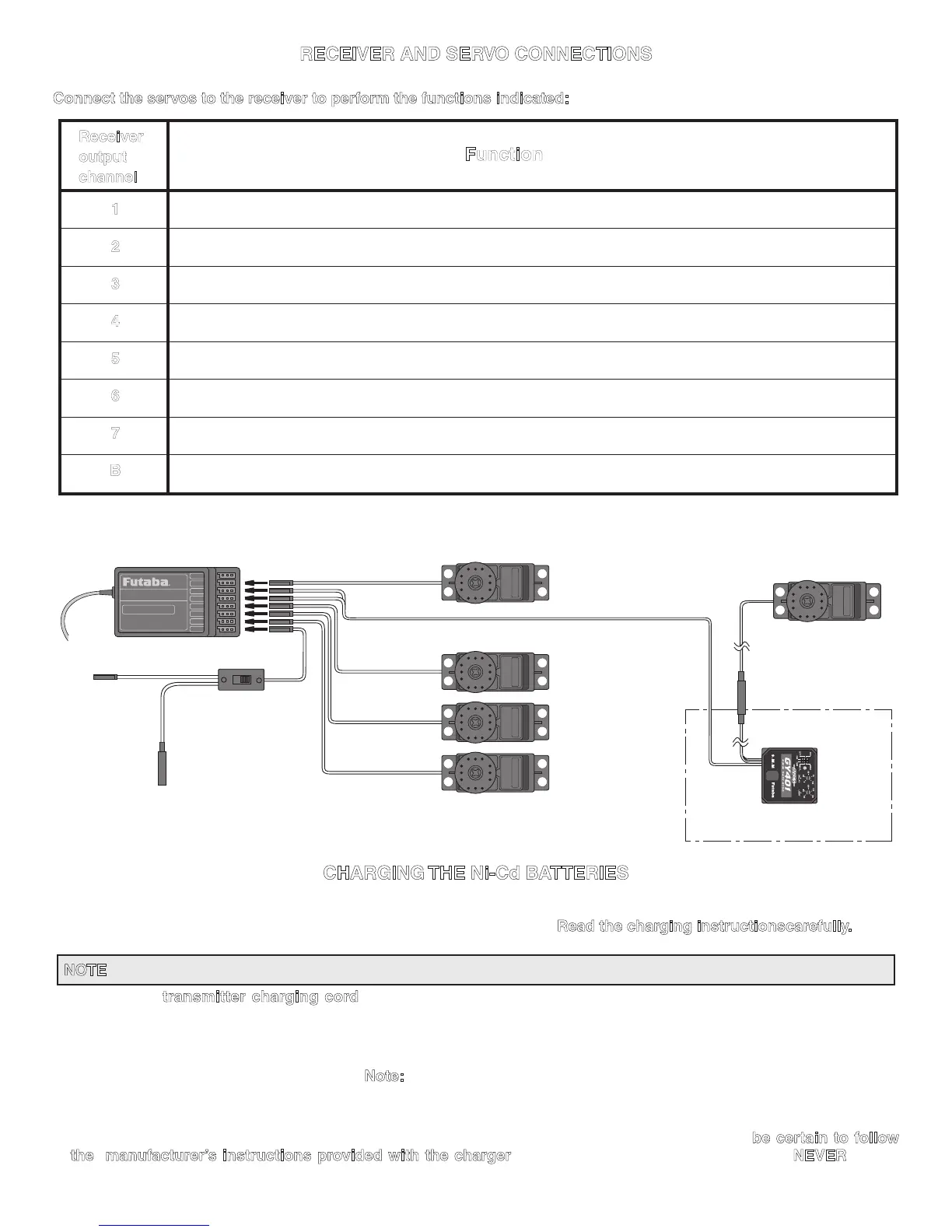 NOTE: The batteries are supplied partially charged, but will require a full, overnight charge before the model may be flown.
