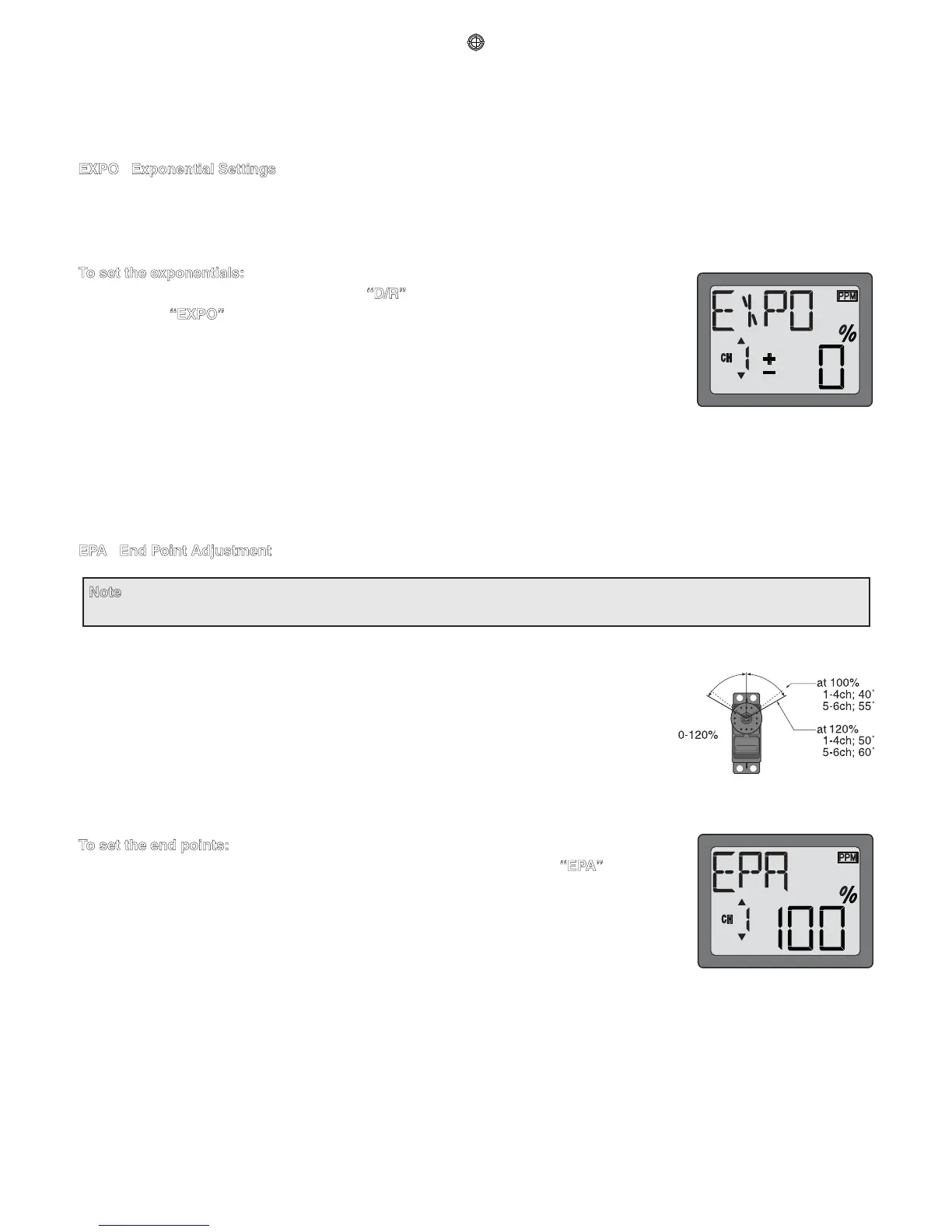 is End Point Adjustments). The same as dual rates, “expos” can be set for both switch positions. Negative exponential (-)