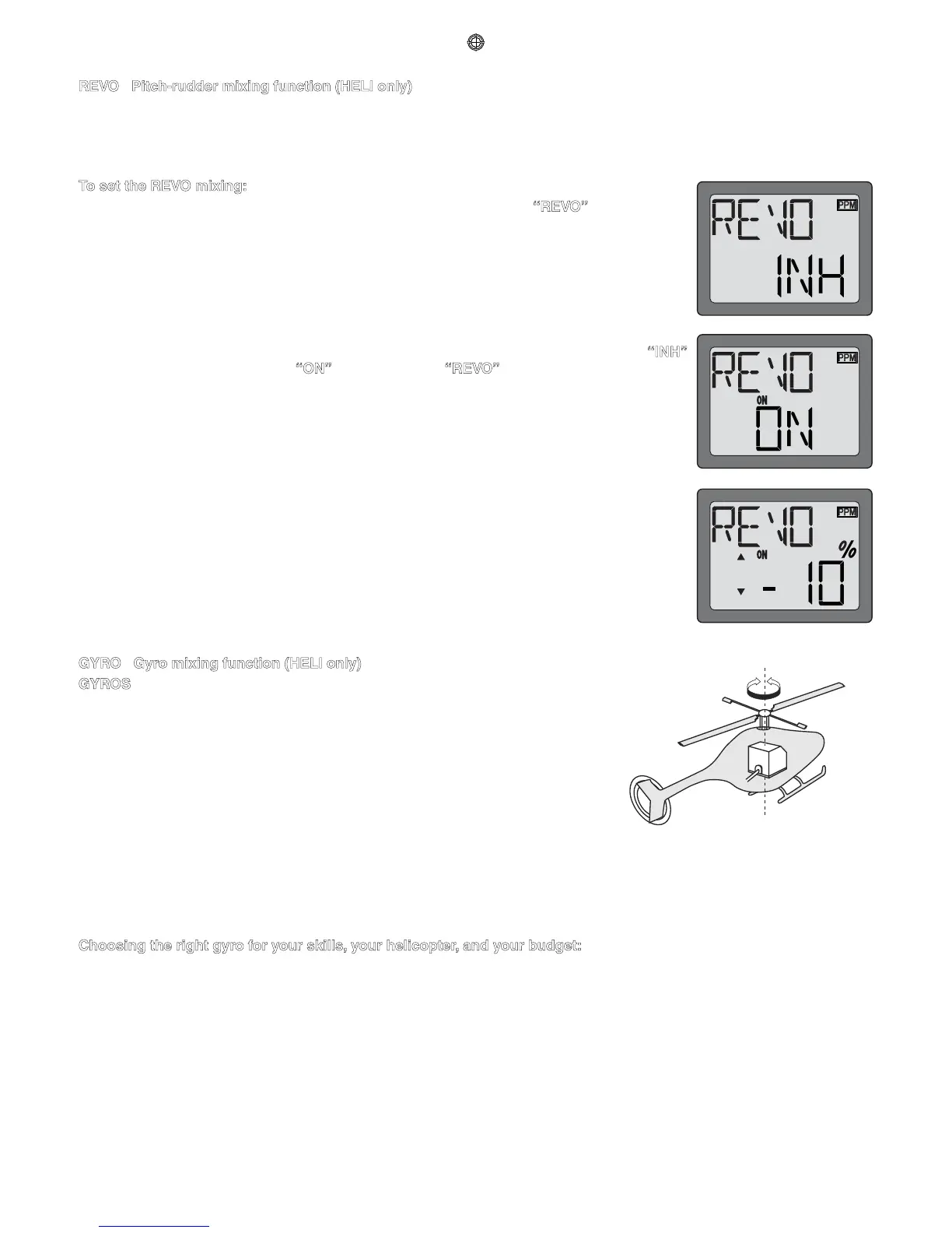 engine torque. (Never use revo. mixing with a heading-hold/AVCS gyro which is in heading hold/AVCS mode. However, revo.