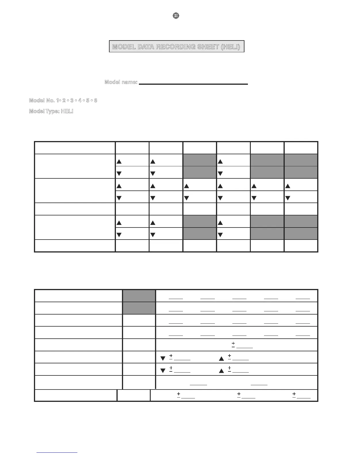 MODEL DATA RECORDING SHEET (HELI)
