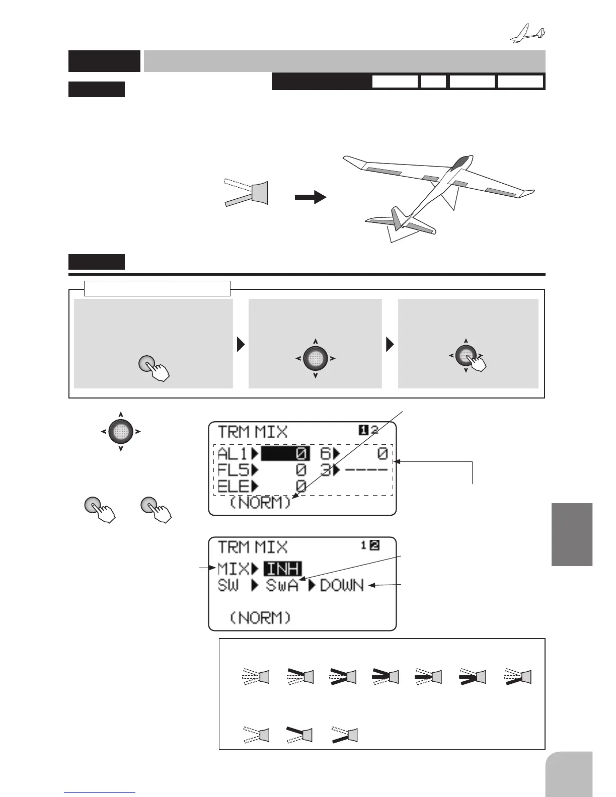 This function shifts the ailerons, elevator, and