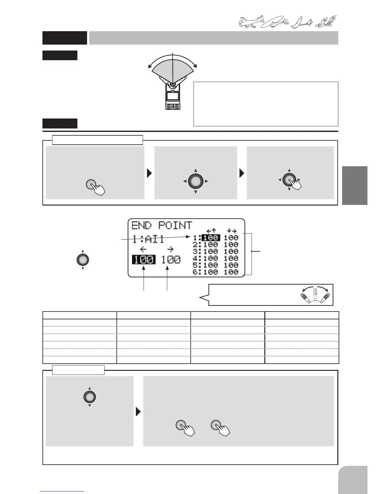 Adjust the rate of each direction of the stick and VR by repeating step ① .