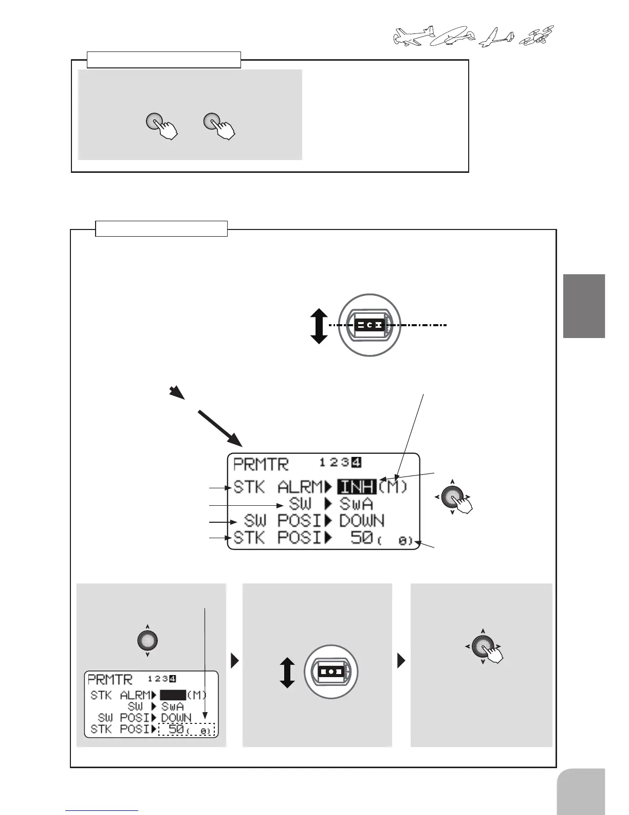 An alarm (single beep) can be sounded at the specied throttle stick position.