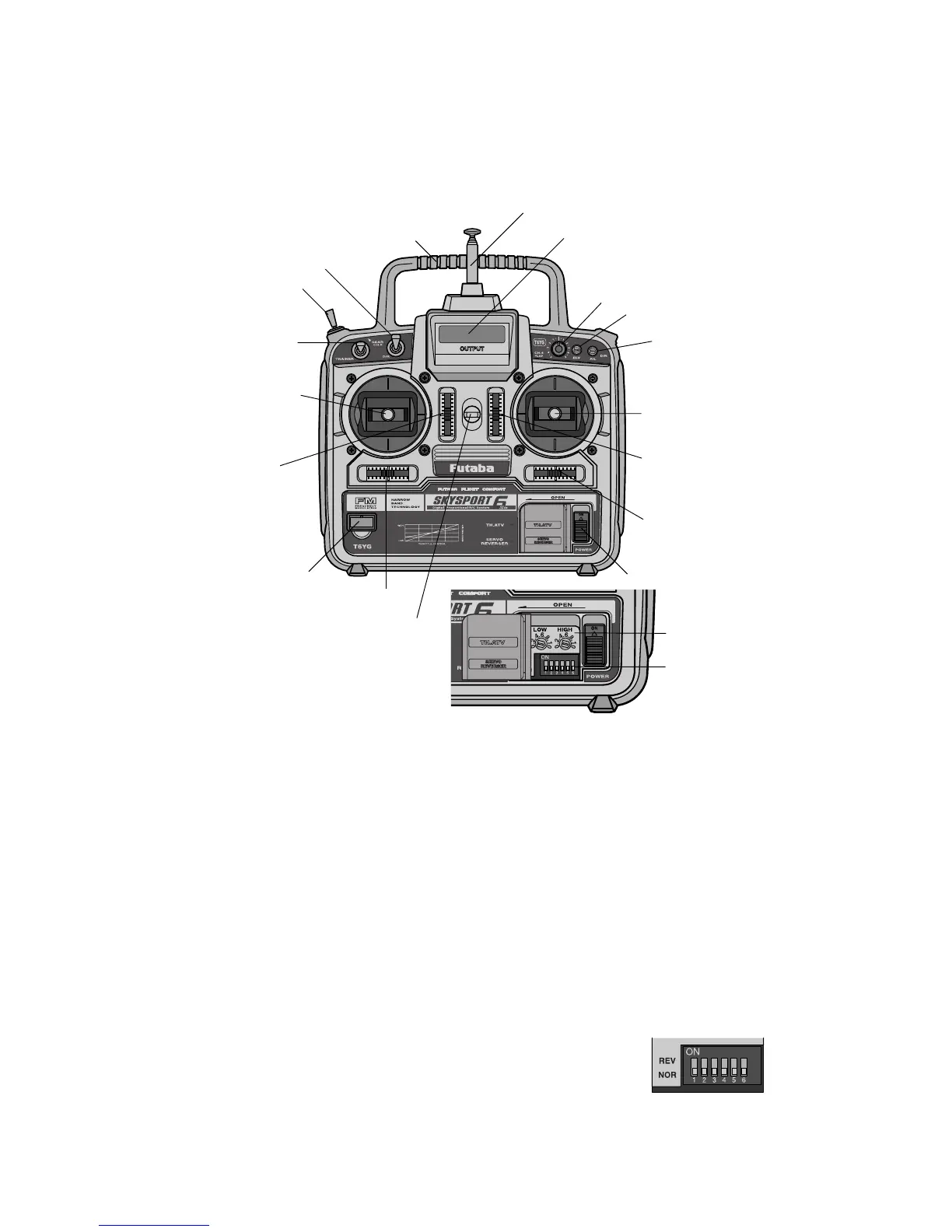 Servo reversing switches: Switches that reverse the direction of operation of the servos. The lower position is the
