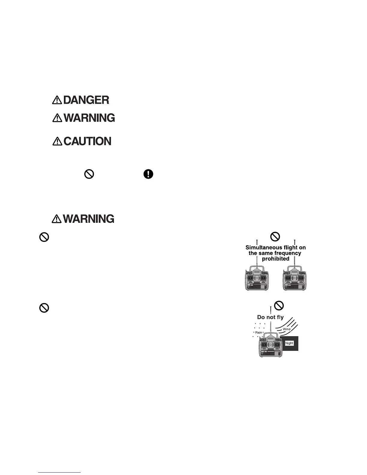 Do not fly on rainy or windy days, or at night.