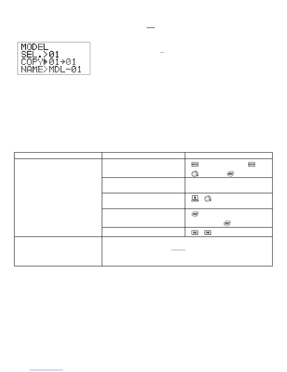 MODEL COPY: copies the current model data into another model memory in the transmitter.