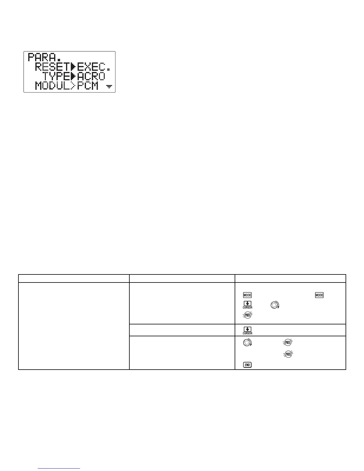 (Each model memory may be set to a different model type.) If your transmitter is a 7CA, the default is ACRO.Ifitisa7CH,