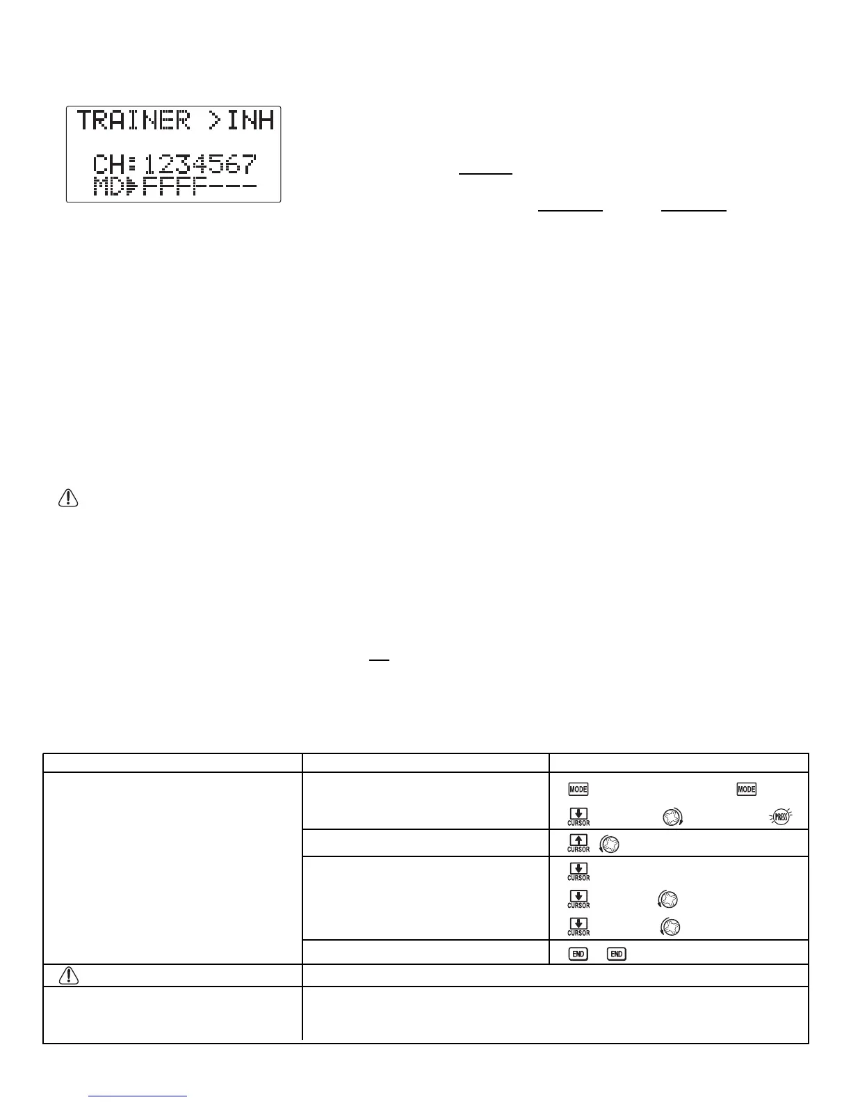 "-": The channel set to this mode cannot be controlled by the student even when the TRAINER SWITCH is ON. The set