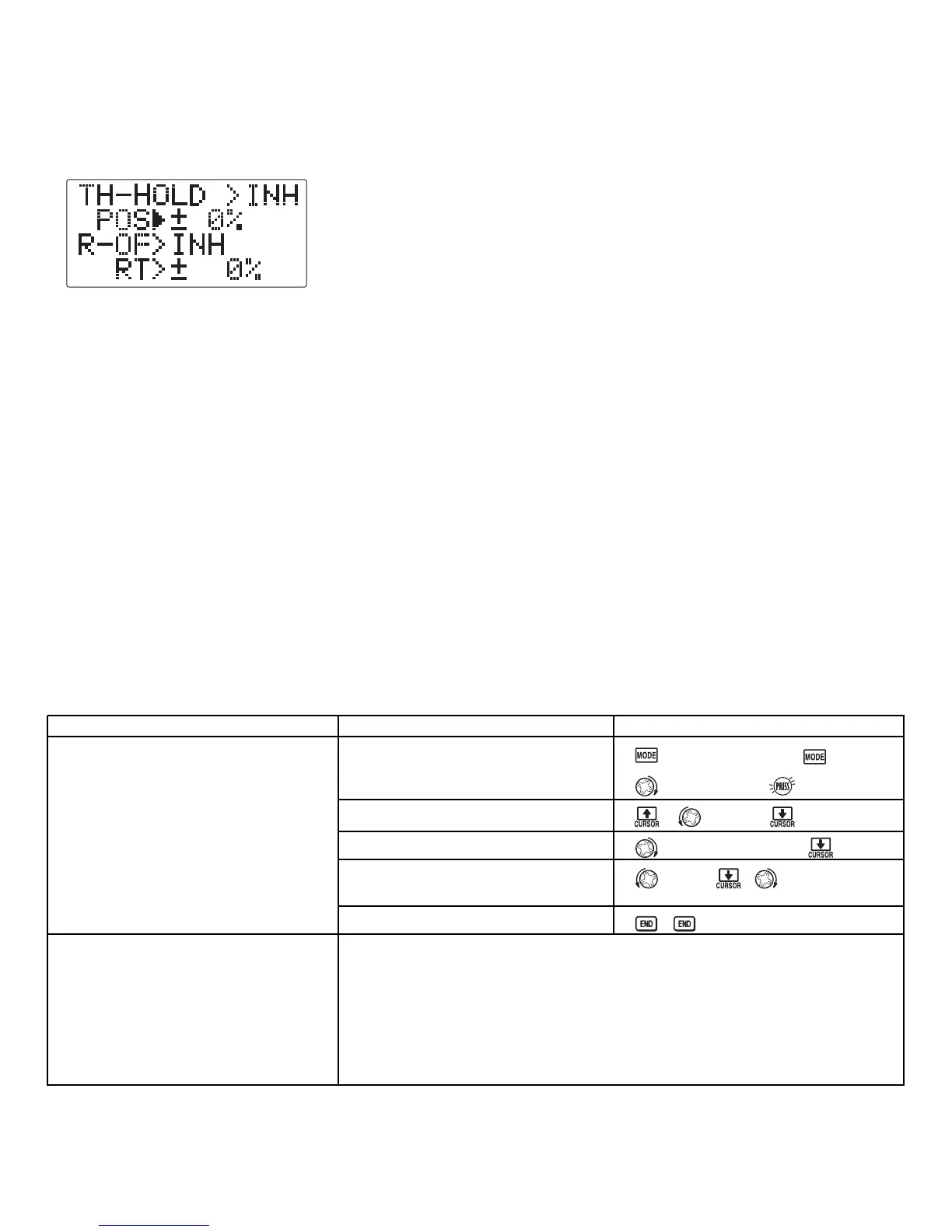Throttle curve: Since the throttle is moved to a single preset position, no curve is available for THR-HOLD.