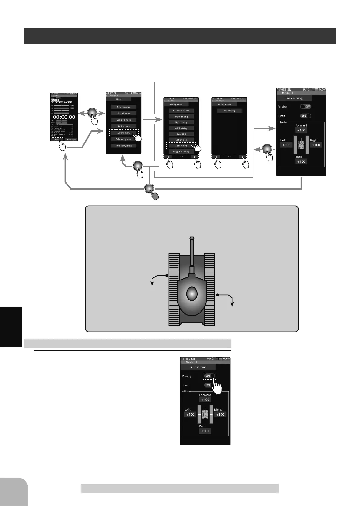 Tap "Mixing" (ON) or (OFF) to select ON/