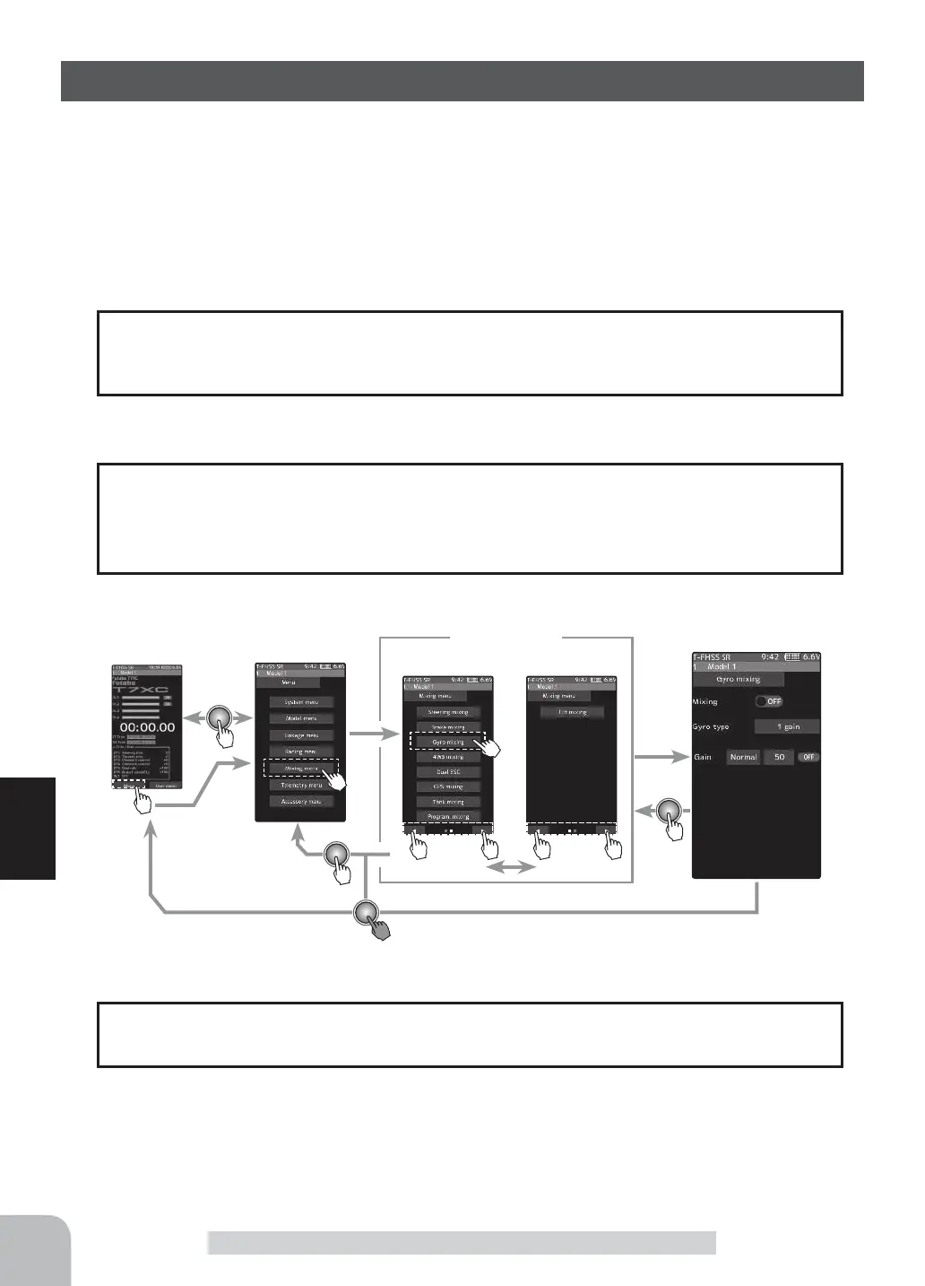 gyro sensitivity input channel to SR mode. If either one is in normal mode, gyro will not