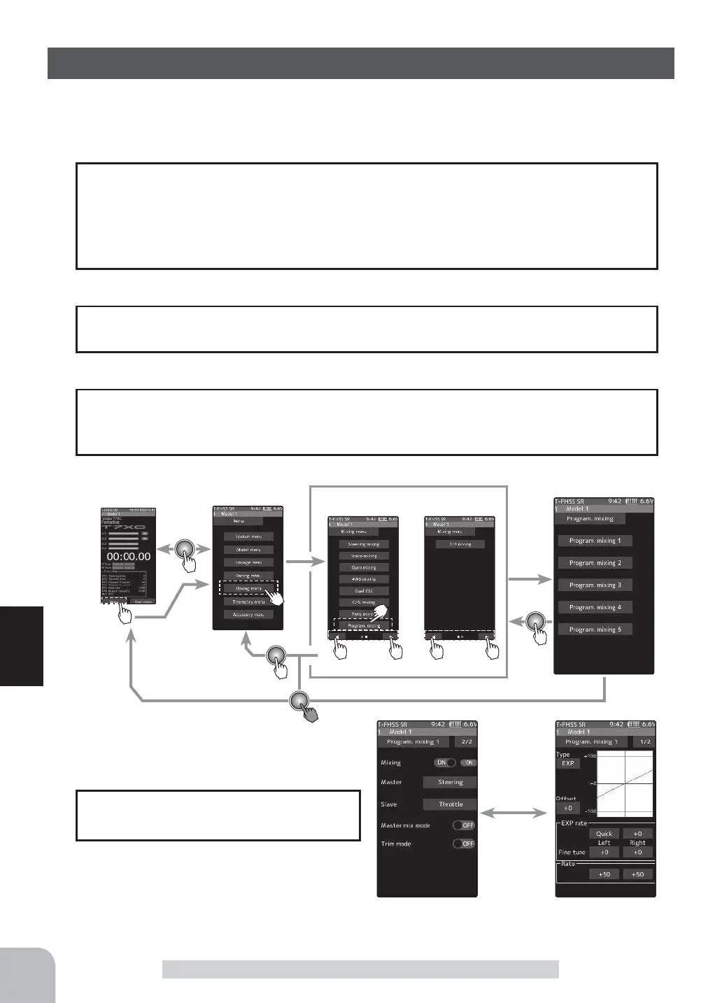 These functions allow you to apply mixing between the steering, throttle and auxiliary