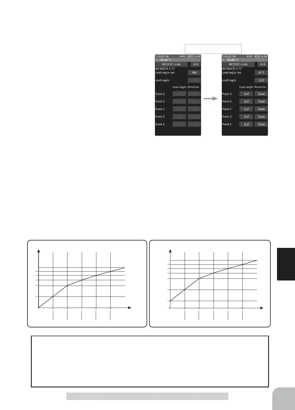 When "Lead Angle Use" is turned on the lead angle versus motor speed of the 5 points A to