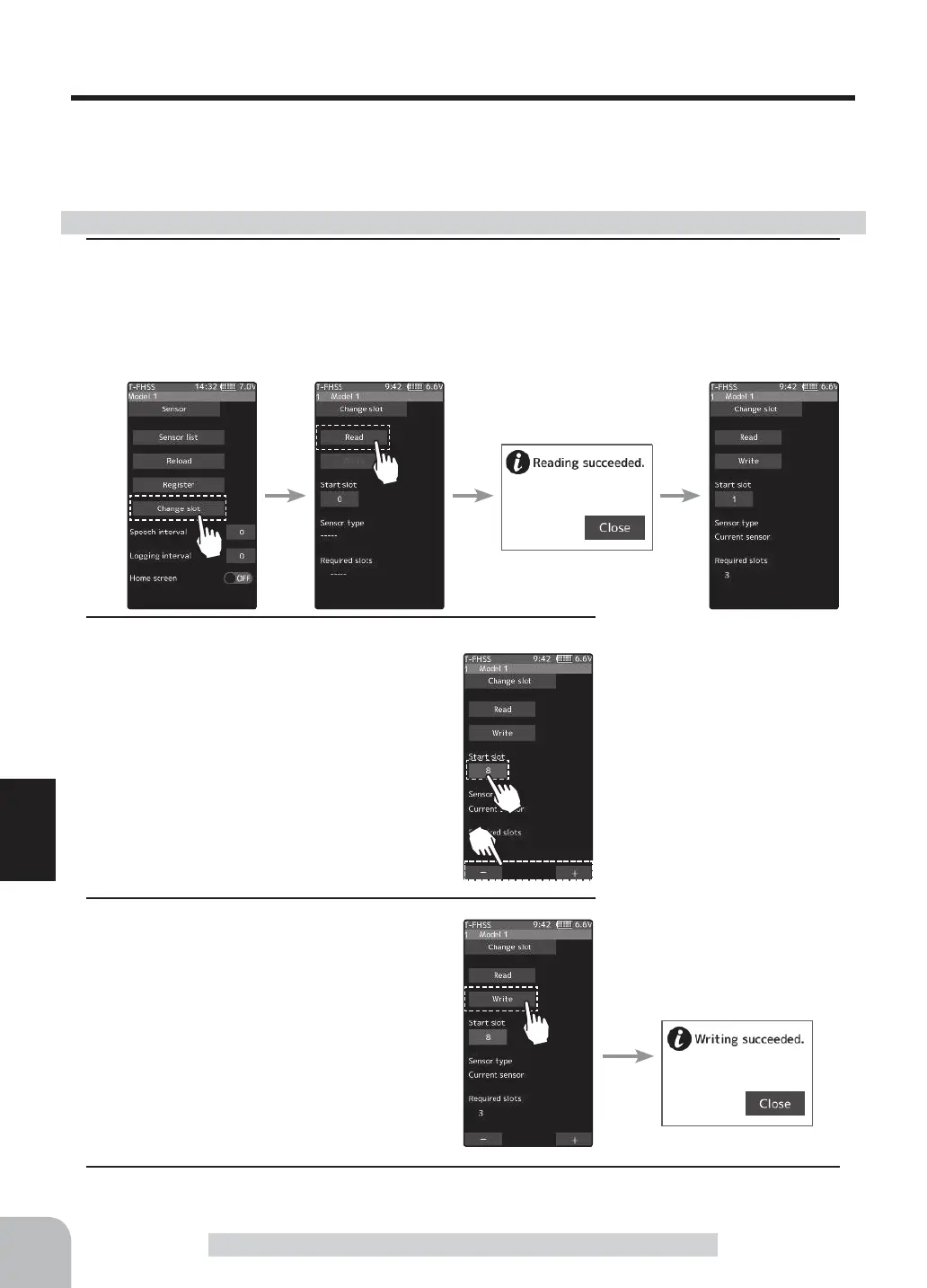 Tap the [Change slot]. The sensor details screen is displayed. Tap the [Read]. The confirma-