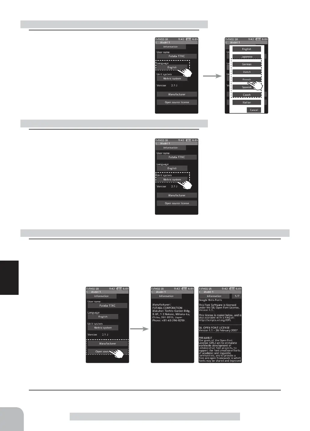 Tap [Open source license], displays the manufacturer information and the license informa-