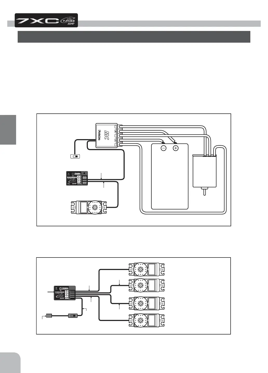 Connect the receiver and servos as shown below. Connect and install the receiver and ser-