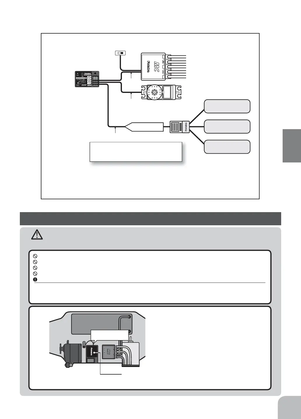 Keep the receiver antenna wire at least 1cm away from motor, battery, and other wiring carrying heavy current.
