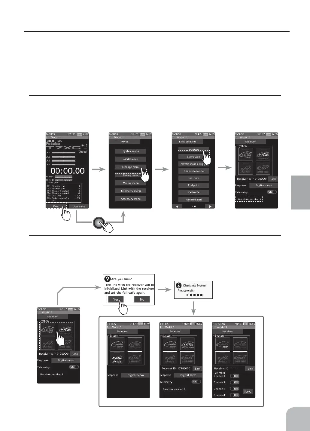 In "Receiver", select and tap the system to be set from T-FHSS SR, T-FHSS, S-FHSS,