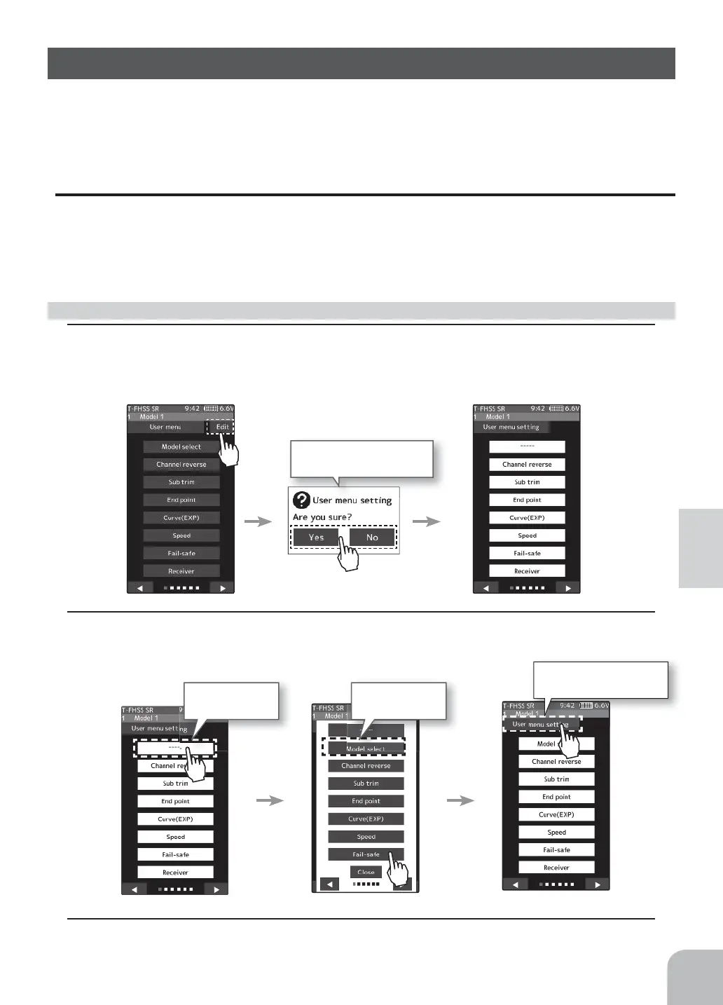 Tap the [Edit] on the user menu screen. A confi rmation screen will appear with "User menu