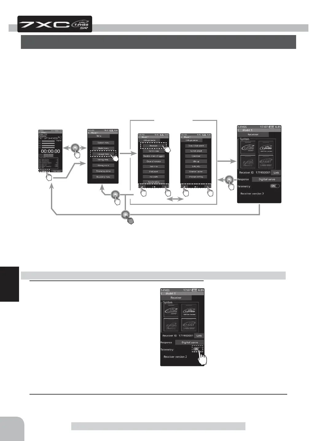 and the items selected at the T7XC, linking of the T7XC with the T-FHSS telemetry system,