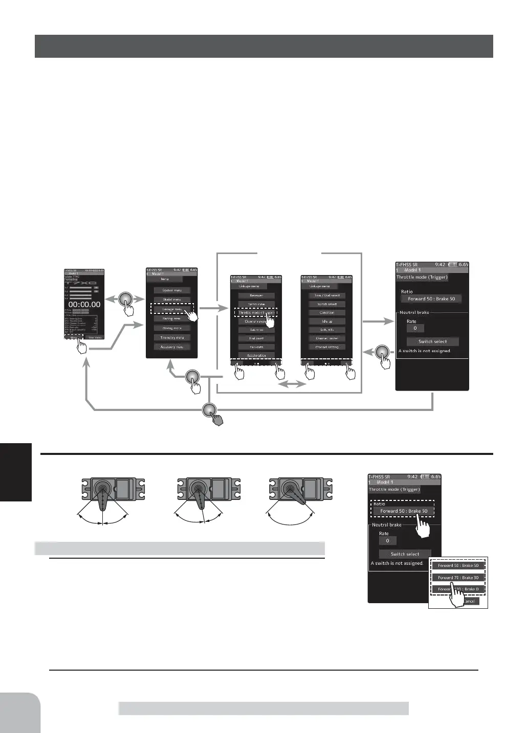 from 70:30, 50:50 or 100:0 by changing the neutral position of the throttle servo.