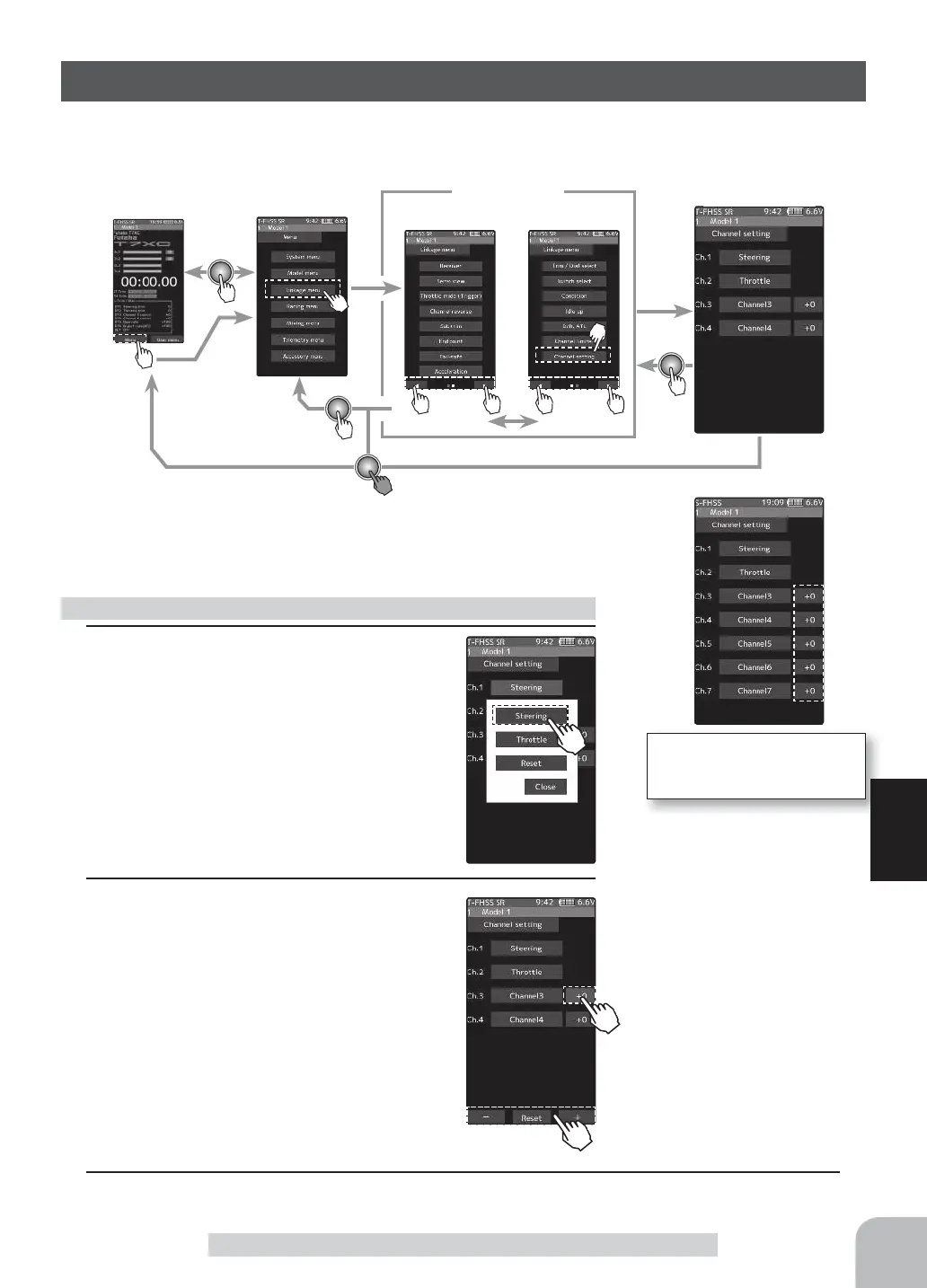 This function assigns steering or throttle to any channel. You can operate steering and throt-