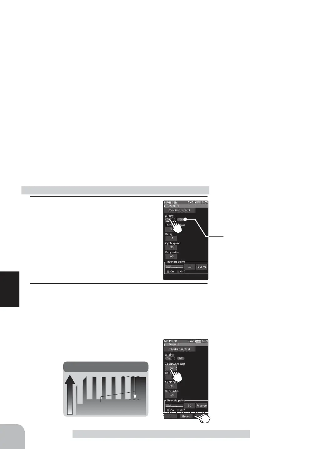 In the throttle operation, set the position of the throttle stick at which traction control starts