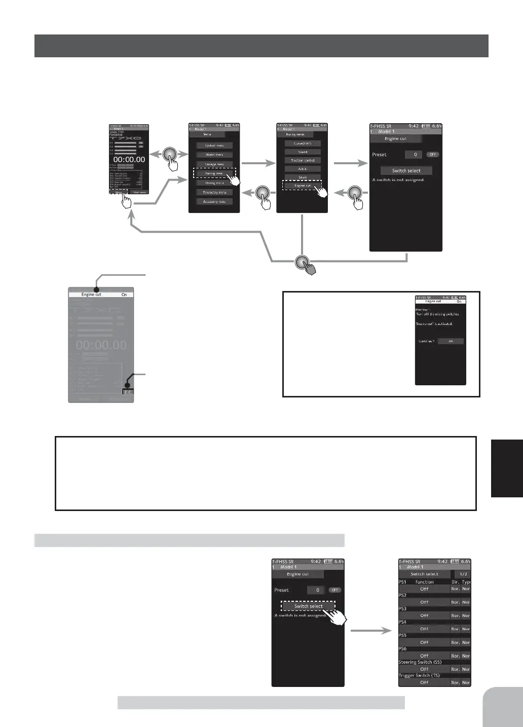 Engine cut ON/OFF is indicated