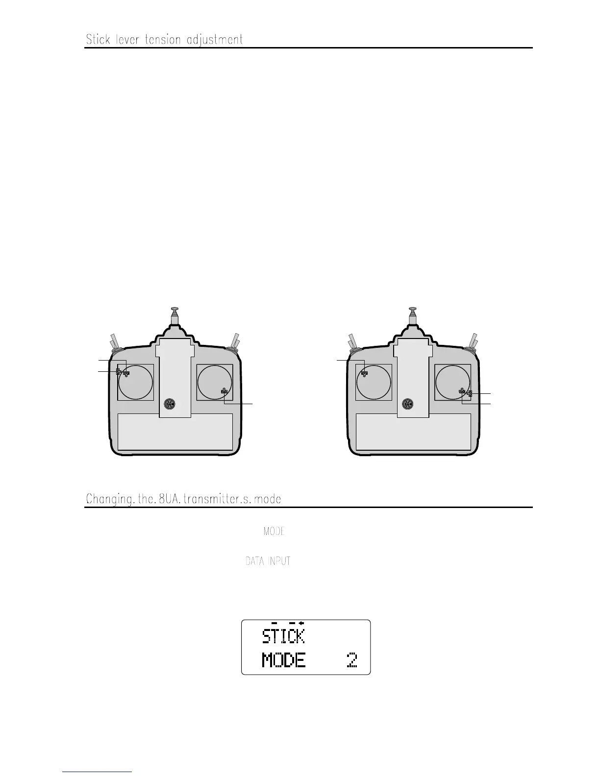 “STICK MODE X,” where X is a number representing the current transmitter mode.