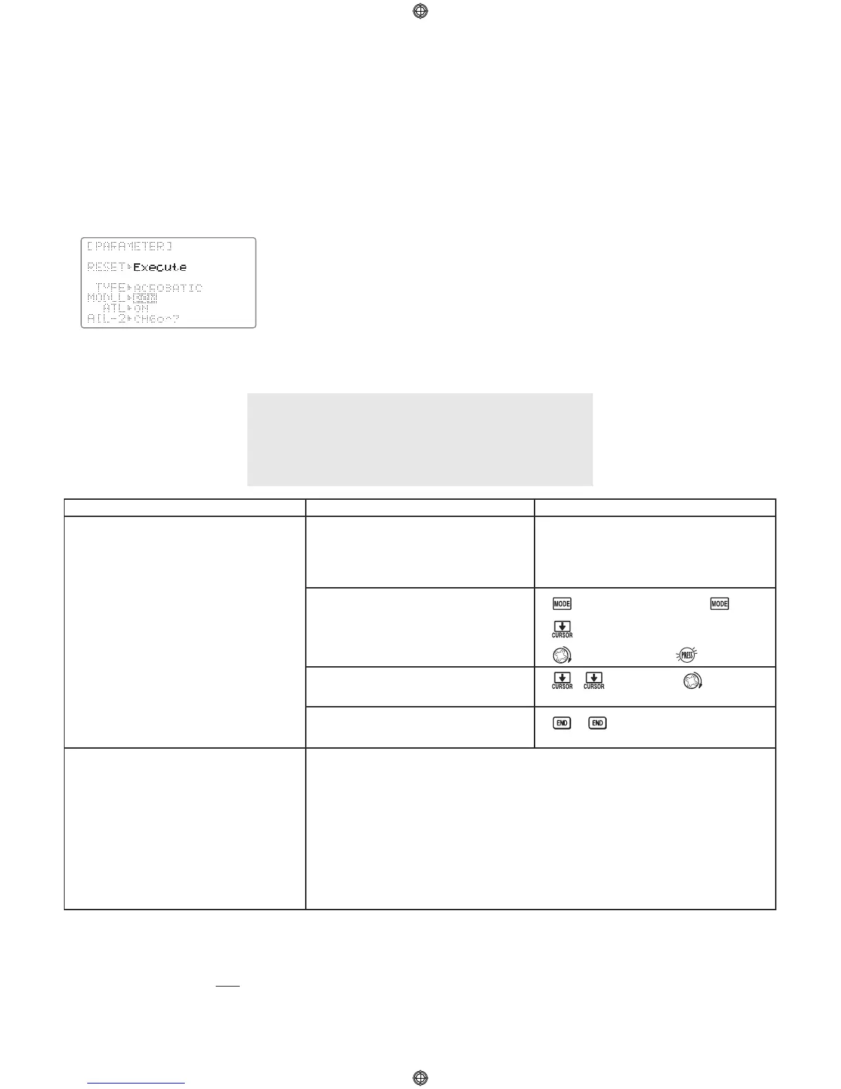 PARAMETER submenu.