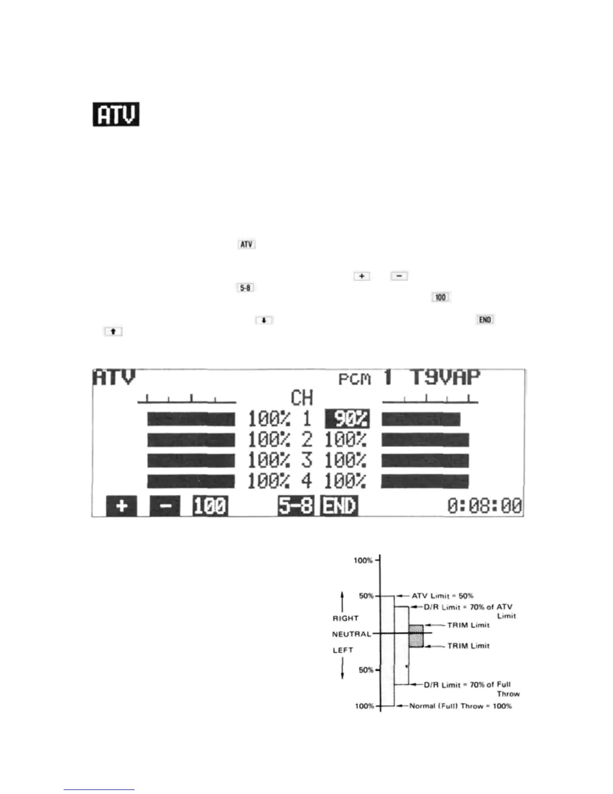 • The ATV function is used to adjust servo travel limits. Servo travel can be adjusted independently in each