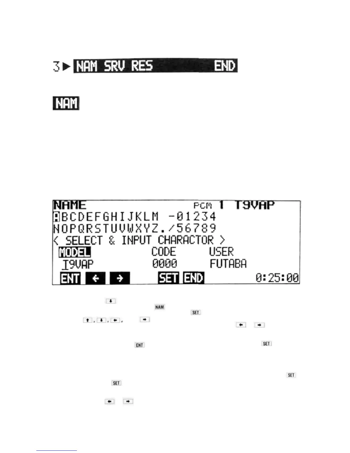 3) To input the model name, select each charac-