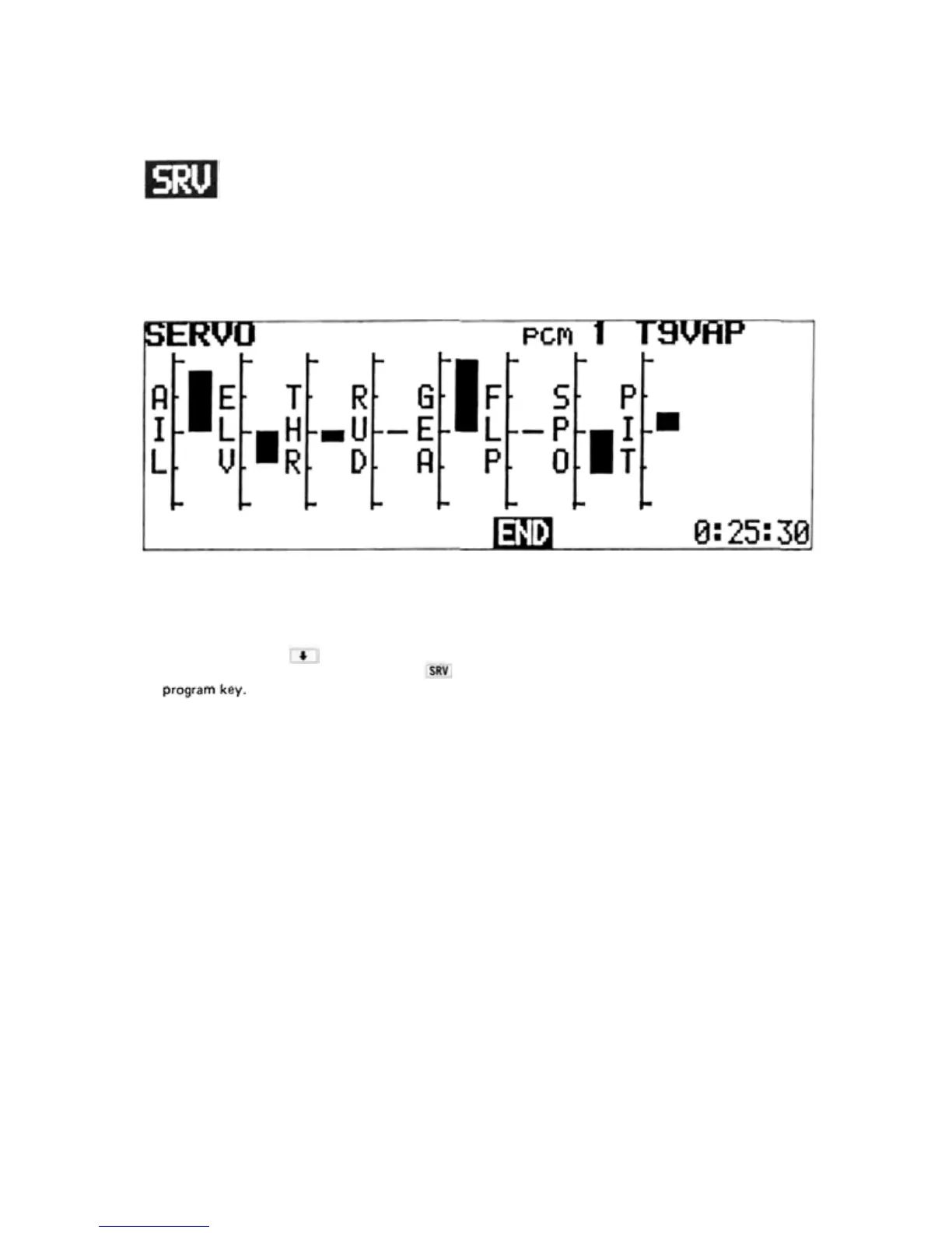 Transmitter control movements are shown on a bar graph representing servo movement for