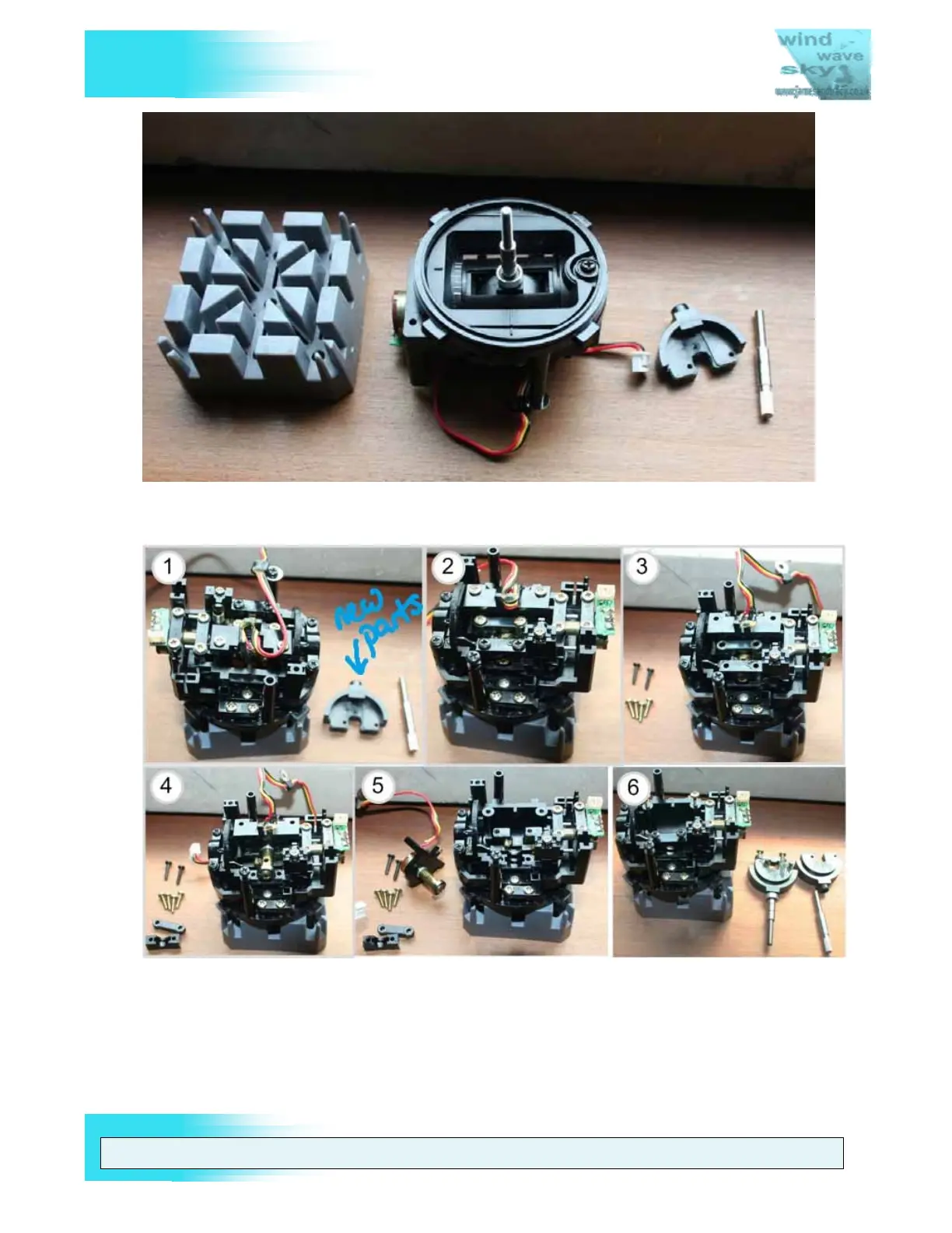 Figure 14 Joystick gimbal removed (Note: new joystick parts for replacement on the right)