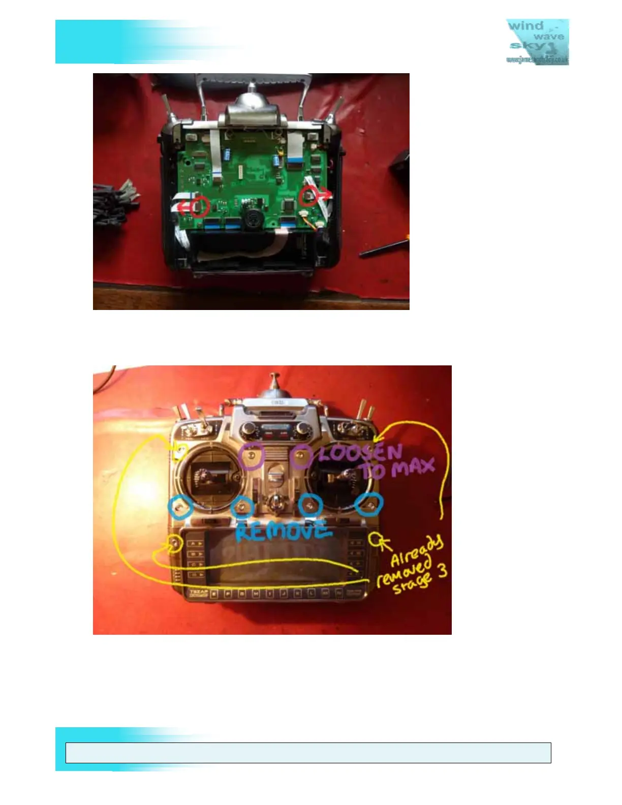 3. Turn the transmitter over and remove and loosen the following Allen key screws