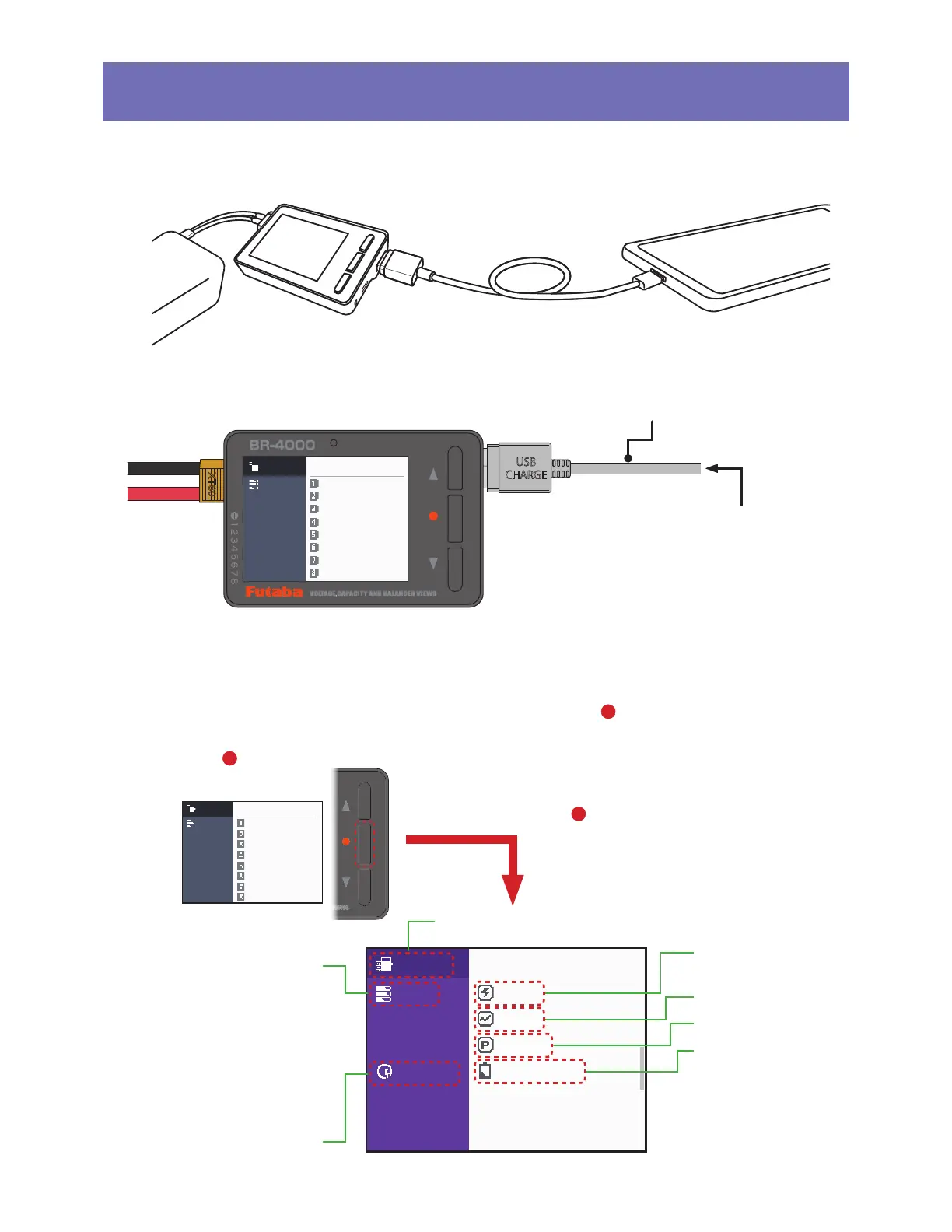 the charging cord, and device or battery press the menu button [