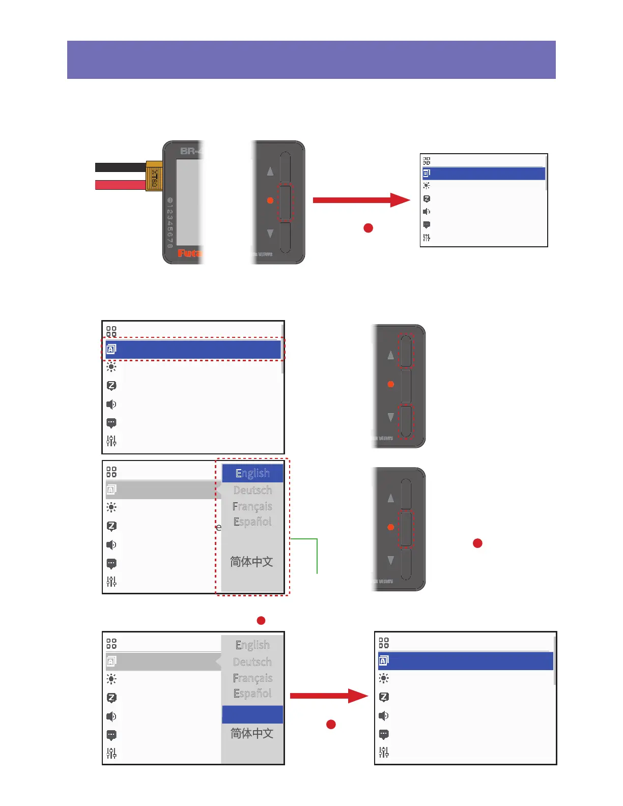 * The following is an explanation using the "Language" setting as an example.