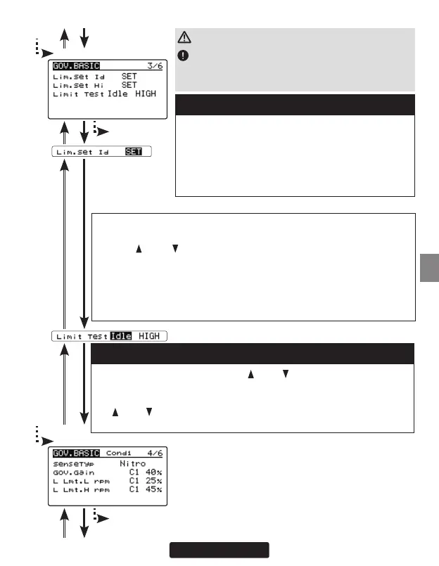 Set the transmitter's throttle stick to the idle position. Select [Lim. Set Id]